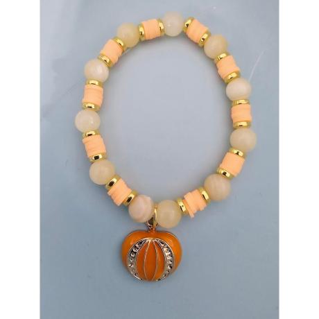 Agate gemstone beads. Clear yellow glass beads. Light Orange polymer heishi beads Gold plated flat round spacer beads Orange and gold plated pumpkin charm Stretch