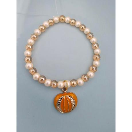 cream luster beads Glass amber beads Orange and gold plated pumpkin charm Stretch