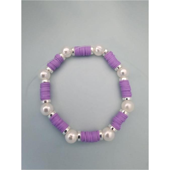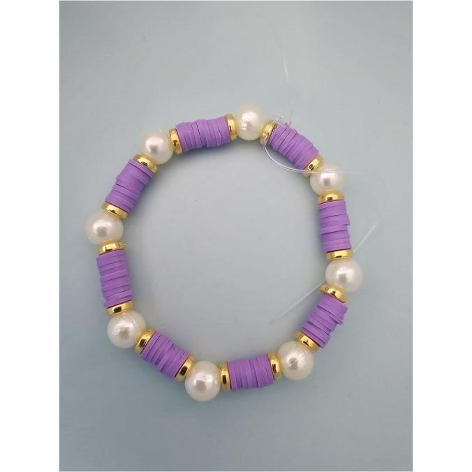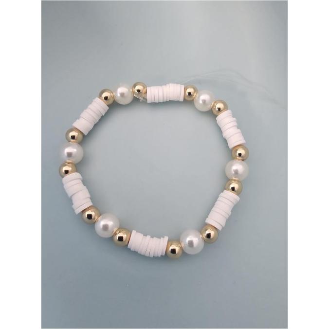 polymer heishi beads White/Cream faux pearl beads Silver/ Gold flat spacer beads